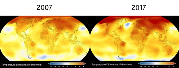 If we consider that the increase in the quantity of carbon dioxide raises, in turn, the Earth's temperature, we understand what this photograph presents us with: the terrible 10yearschallenge of global warming. In fact, the most recent IPCC report alerts us to the danger that the temperature may continue to rise, and that if we do not stay within the maximum levels established in the Paris Agreement, the consequences for the planet will be deadly.