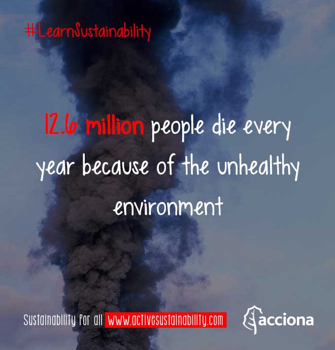 The pollution of the environment not only involves the destruction of flora and fauna, but also seriously damages the human being. The World Health Organization (WHO)warns that 12.6 million people die every year because of the unhealthy environment.