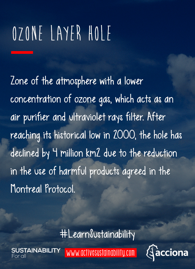 The ozone layer hole is the zone of the atmosphere with a lower concentration of ozone gas, which acts as an air purifier and ultraviolet filter.