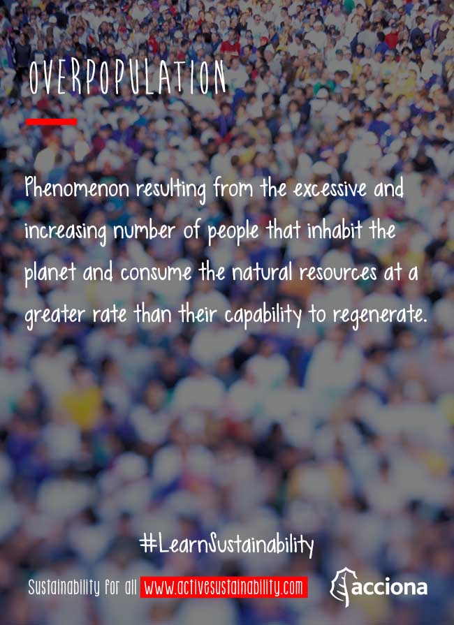 This is overpopulation: a phenomenon resulting from the excessive and increasing number of people that inhabit the planet and consume the natural resources at a greater rate than their capability to regenerate.