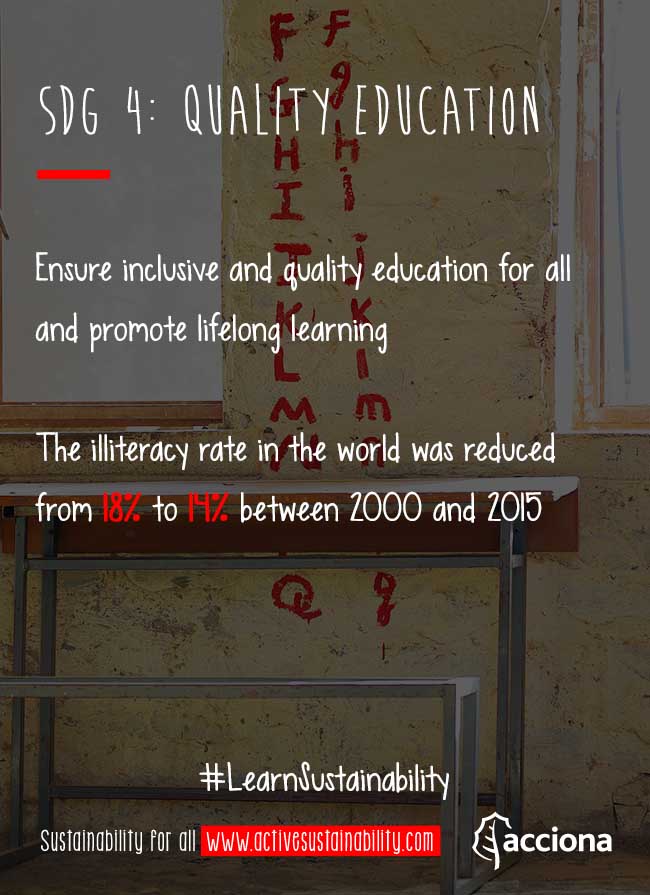 Access to quality education is the fourth of the United Nations' Sustainable Development Goals set in the Agenda 2030: Ensure inclusive and quality education for all and promote lifelong learning.