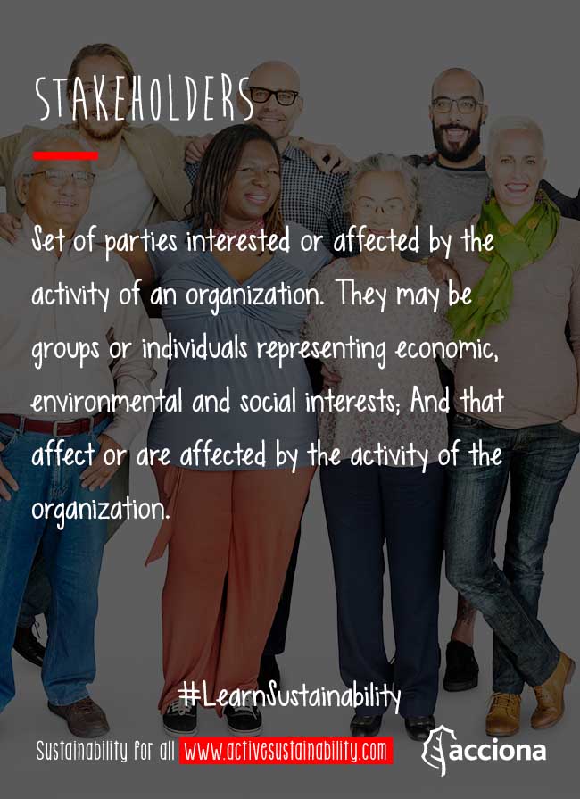 The stakeholders are sets of parties interested of affected by the activity of an organization. They may be groups or individuals representing economic, environmental and social interests; And that affect or are affected by the activity of the organization.