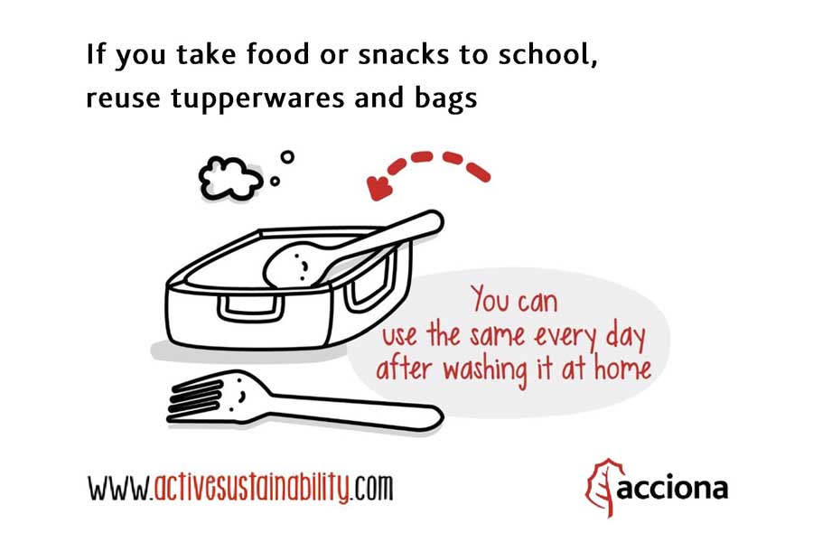 When schedules force you to eat at school or college and take food from home, use reusable tupperwares so you can use it every day after washing it at home. The same can be done with the bags. Don’t get rid of them every day, use it if it is clean, or use it as a garbage bag if it’s dirty.