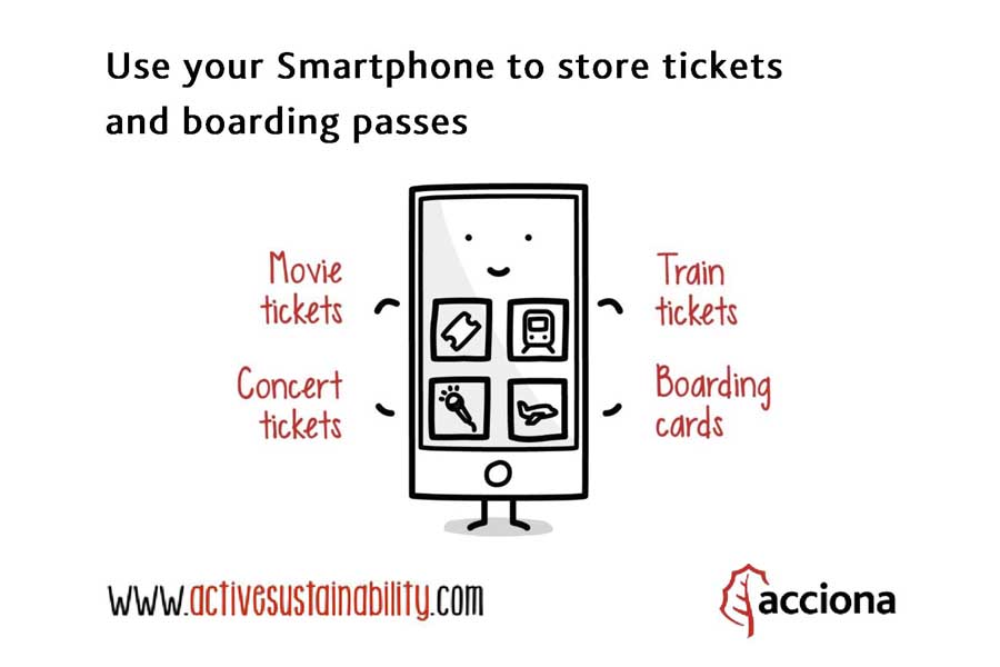 Many airlines, railways, bus, concert promoters or theaters give you the chance to access its services through an electronic pass with your Smartphone. Use this sustainable option and stop printing sheets. Tickets and boarding passes, always with you in your device.