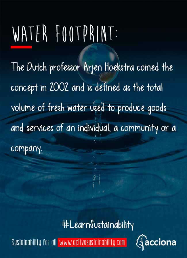 The water footprint of a person, community, company or country is the total fresh water used to produce the goods and services consumed. The Dutch professor Arjen Hoekstra coined the concept in 2002 and since then it's been used to extract data about the water footprint in different countries.