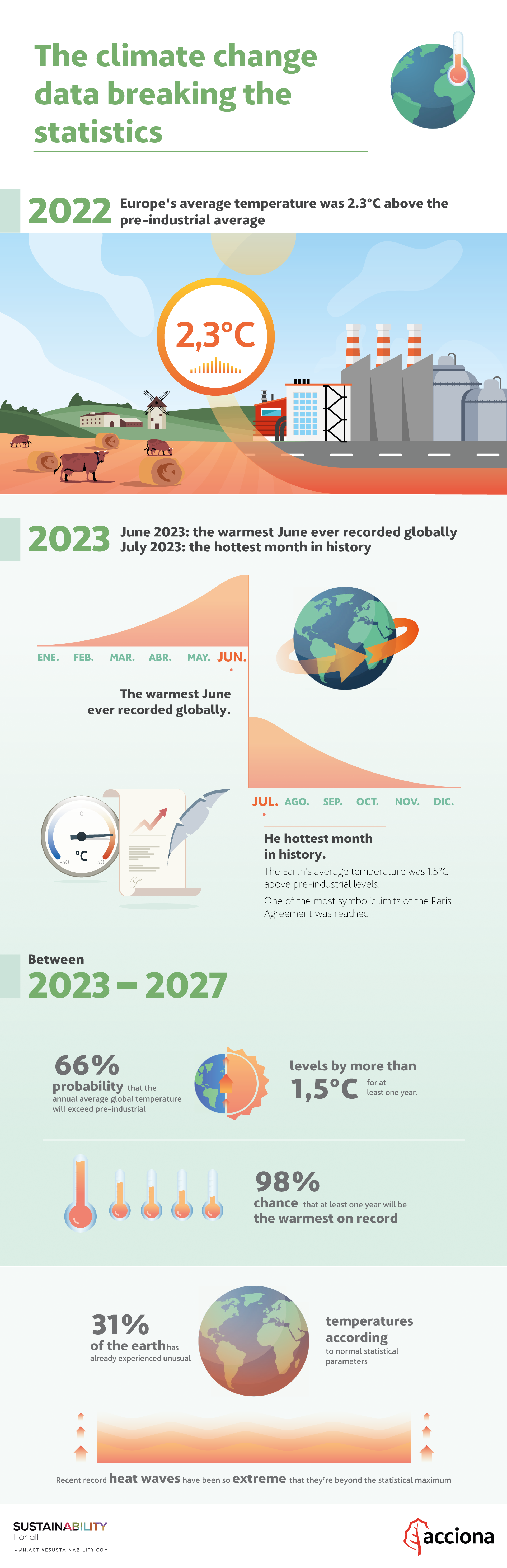 In this article we discussed how the temperature in Europe was rising twice as fast as the rest of the planet. 2022 was a landmark, with temperatures 2.3ºC above the average during the preindustrial era.