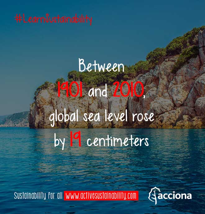 Between 1901 and 2010, sea level has increased 19 centimeters due to global warming. The ice extension in the Arctic has decreased since 1979 at a rate of 1.07 million square kilometers per decade.