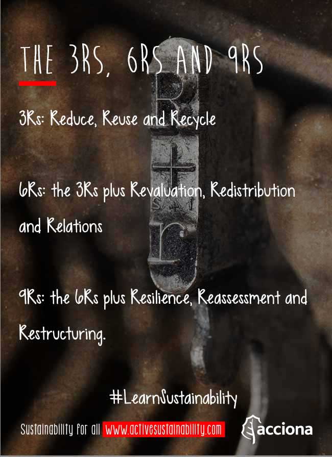 To these three Rs, new concepts have been added: the revaluation (of resources), redistribution (of income) and (improve) relations. Then another three Rs were added: resilience (adaptability), reassessment (scale value) and restructuring (of the economy).