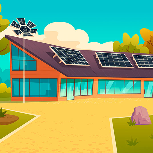 Over the school’s 270 square meters, everything is sustainable: from solar photovoltaic panels and wind turbines that generate electricity consumed on site, to the re-used water in the organic garden and greenhouses. The roof of the building has rainwater collectors with a capacity of 30,000 liters, stored in four tanks, where it’s also purified. It has three classrooms, four bathrooms and various common areas.