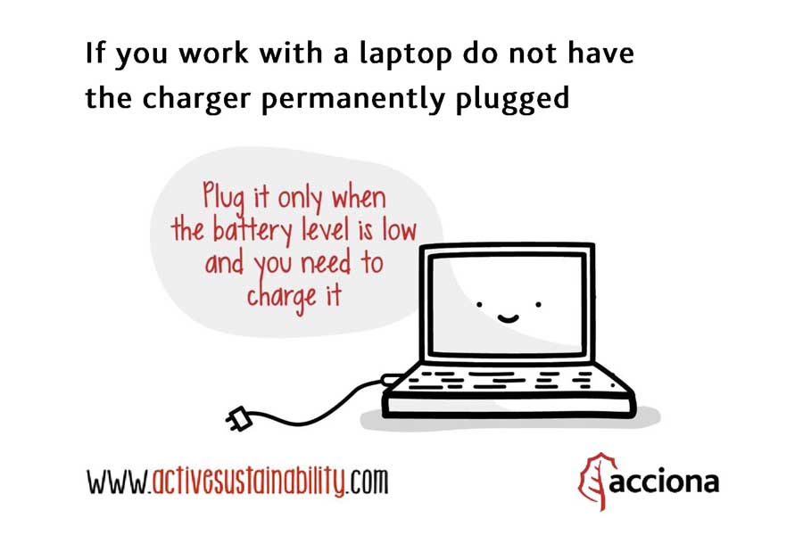 Laptop batteries allow you to work without being connected to the electrical grid, which means power and consumption save for the company. Get used to work while the computer is unplugged and connect it only when the device warns you that the battery level is low and needs plugging. When loaded, disconnect it again.